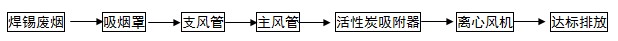 3)、通過活性炭吸附處理后的焊錫廢氣通過風管高空排放。